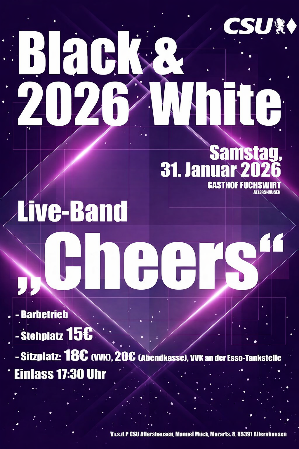 +++Der Freising.News Fasching-Tipp: Black & White 2026 – Einladung zum Schwarz-Weiß-Ball der CSU-Allershausen.+++