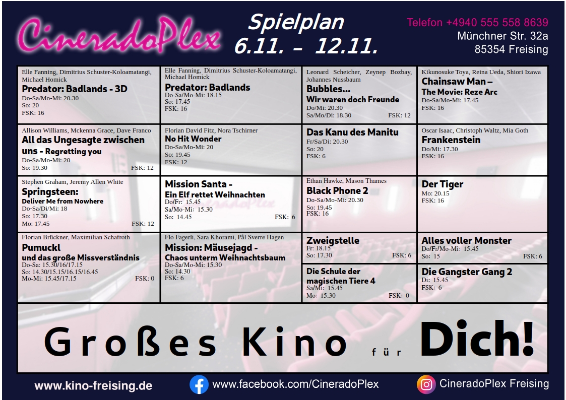 +++Freising.News Kino-Tipp: Das CineradoPlex Kino Freising Kinoprogramm vom DO 06.11.-Mi 12.11.2025.+++