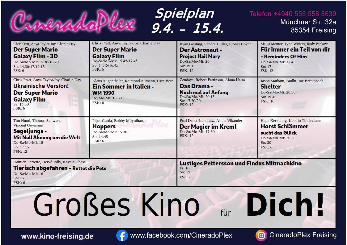 LandkreisNeufahrn +++Freising.News Kino-Tipp: Das CineradoPlex Kino Freising Kinoprogramm vom DO 09.04-Mi 15.04.2026.+++ 9. April 2026 AHA Ähnliche Beiträge