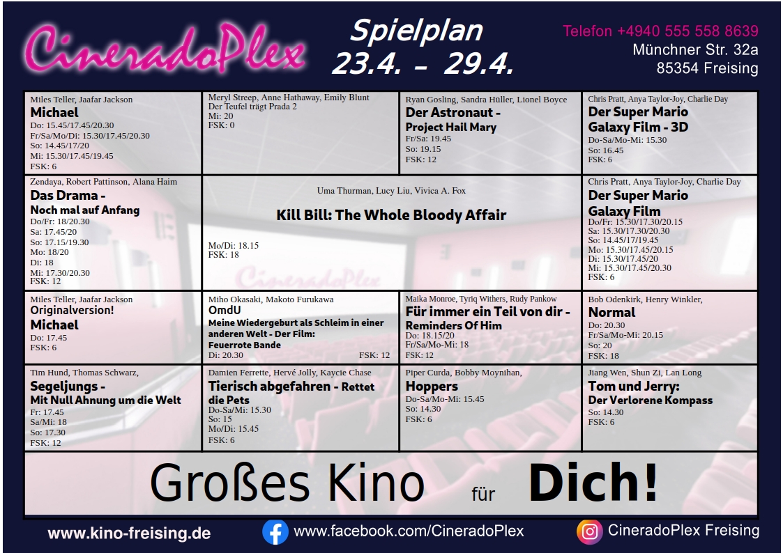 NachrichtenStadt +++Freising.News Kino-Tipp: Das CineradoPlex Kino Freising Kinoprogramm vom DO 23.04-Mi 29.04.2026.+++ 23. April 2026 AHA Ähnliche Beiträge