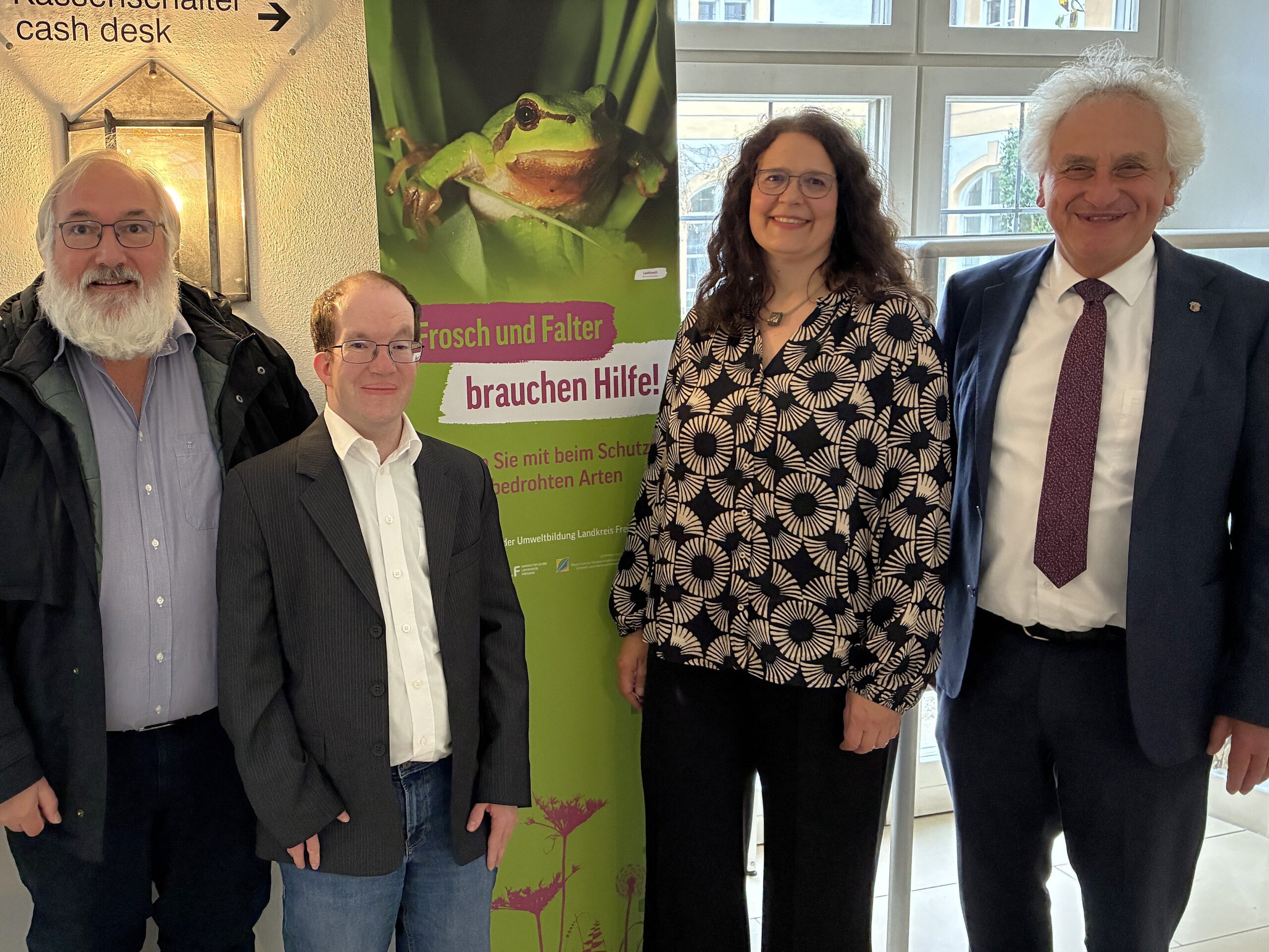 Die Hauptakteure bei der Gründung der „Umweltbildung Landkreis Freising“ (v.r.) Landrat Helmut Petz, die beiden Leiter Dr. Judit Tuschak und Gerson Zimny sowie der ehemalige Leiter der Unteren Naturschutzbehörde Jörg Steiner.