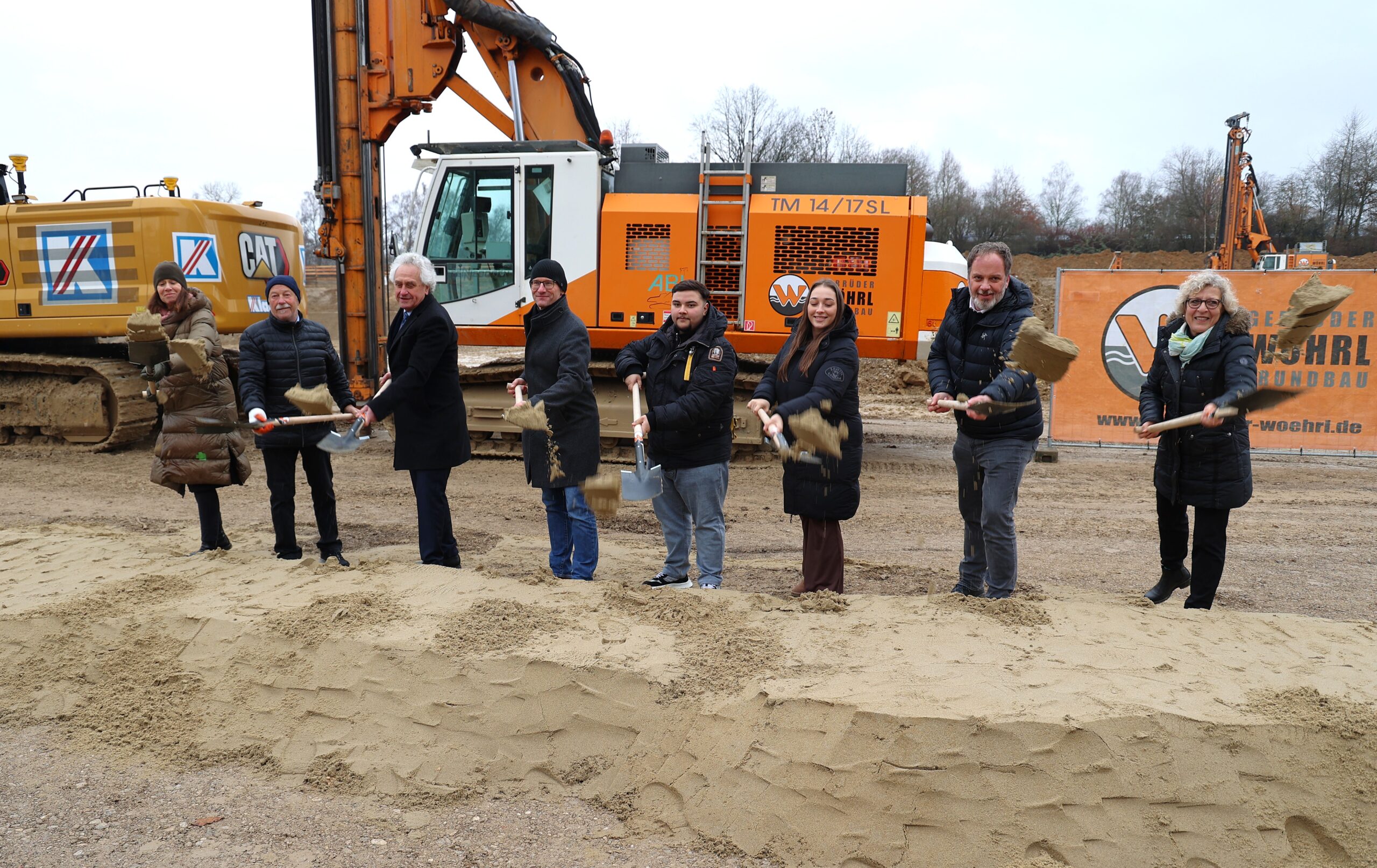 Wer in diesen Tagen in Freising die Wippenhauser Straße entlang fährt, dem wird die große Baustelle zwischen Camerloher Gymnasium und Berufsschule schon aufgefallen sein. Dort entsteht der Neubau des Staatlichen Beruflichen Schulzentrums Freising – das derzeit größte Bauprojekt des Landkreises Freising. Am Mittwoch, 26. November, setzte Landrat Helmut Petz zusammen mit Oberbürgermeister Tobias Eschenbacher und weiteren am Bau Beteiligten den ersten Spatenstich.