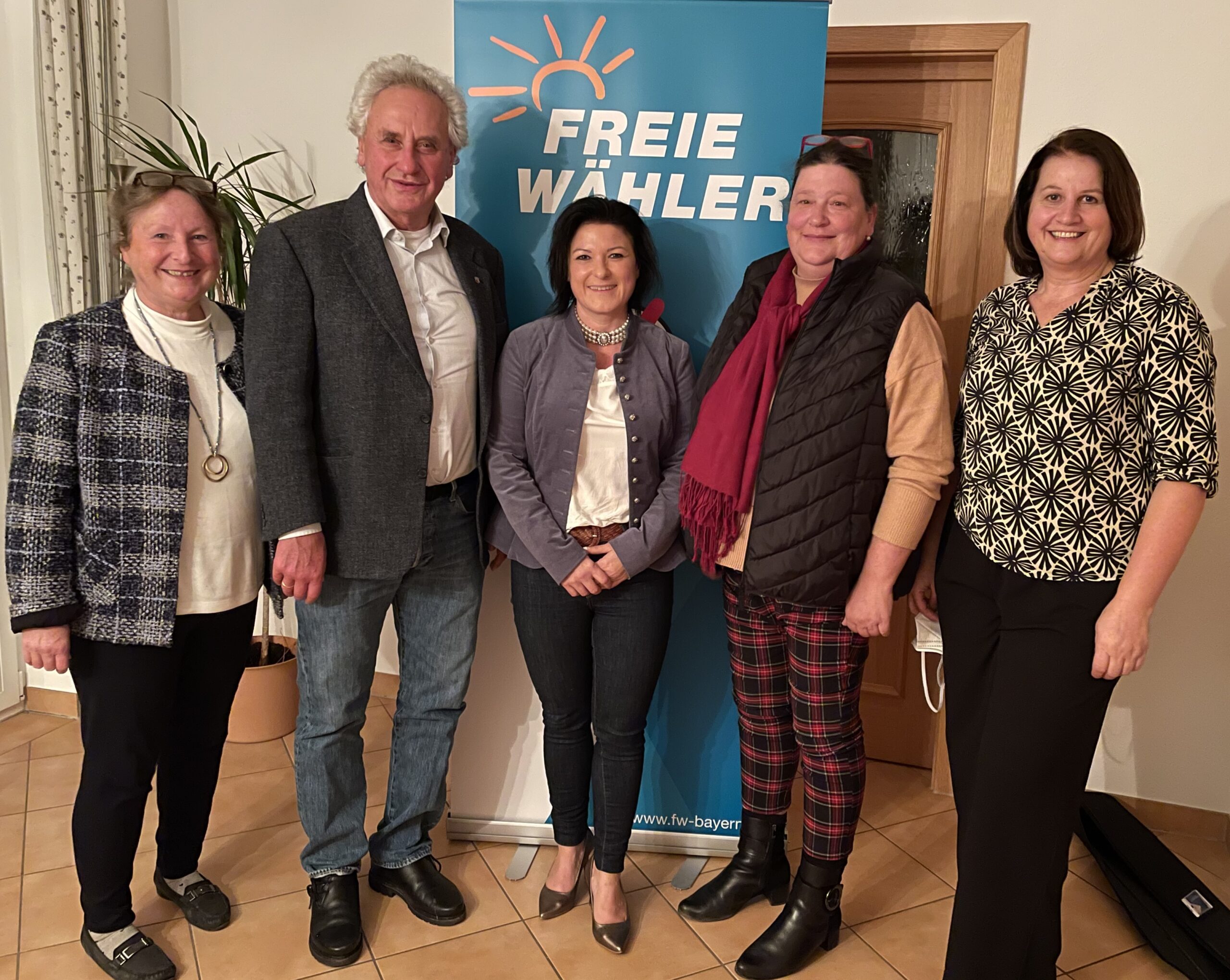 Zum Bild (Quelle Foto: FW-Kreisvereinigung) zeigt v.l. Sonja Kieslinger (Schatzmeisterin Kreisvereinigung), Landrat Helmut Petz, Bürgermeister-Kandidatin Birgit Weinsteiger, Stephanie Pfügler (Schriftführerin Kreisvereinigung) und Maria Scharlach (Stv. Vorsitzende FW-Kreisvereinigung Freising)