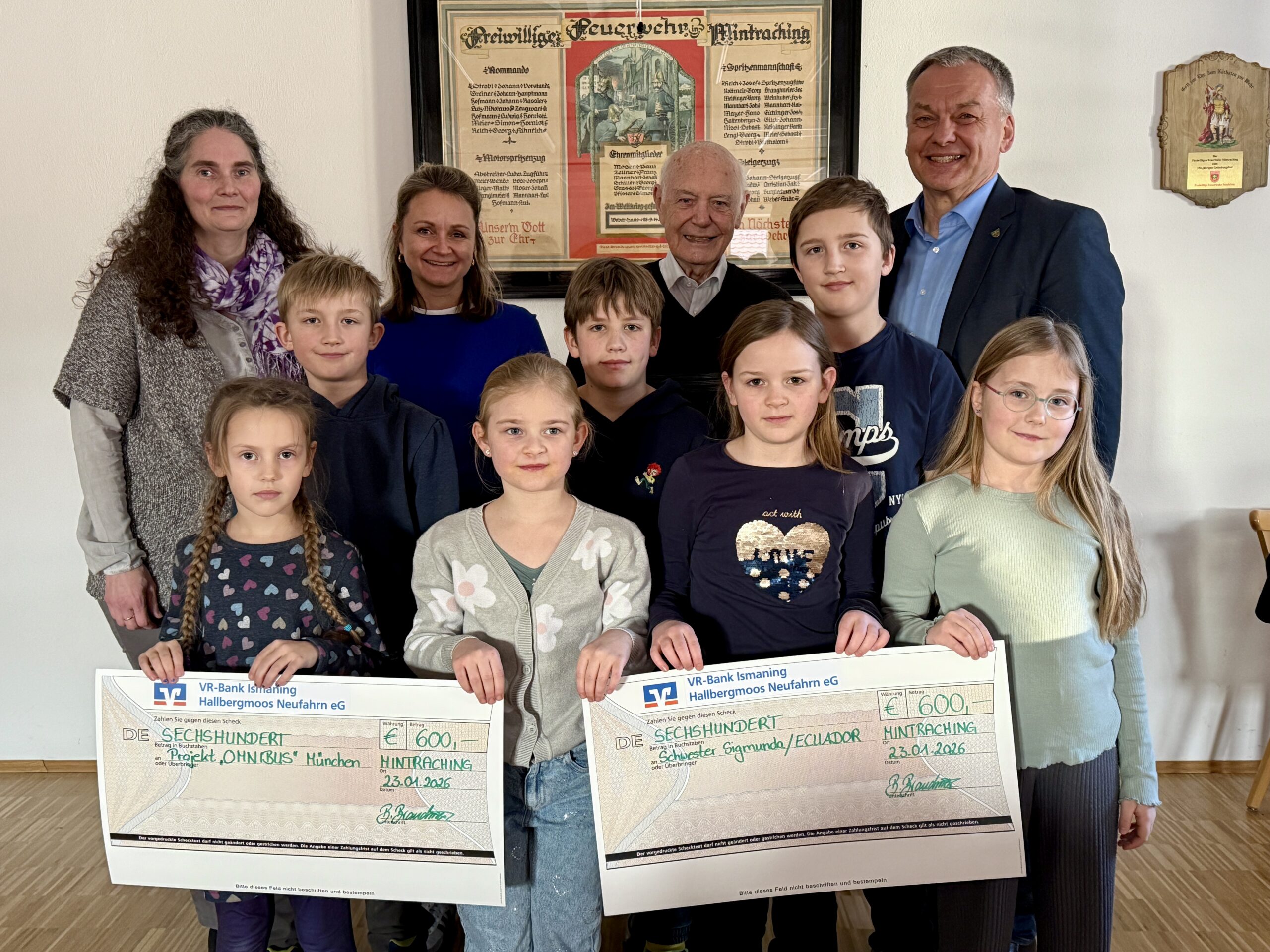 Auch das Kinderhaus „El niño“ in Quito profitiert seit vielen Jahren von der Unterstützung aus Mintraching. Die Einrichtung, gegründet von der Dominikaner-Schwester Sigmunda und aus ihrem Vermächtnis weitergeführt, bietet Straßenkindern Schutz, Betreuung und neue Perspektiven. Im angeschlossenen Förderzentrum außerhalb der Stadt werden zudem geistig und körperlich beeinträchtigte Kinder aus armen Familien therapeutisch und medizinisch begleitet. Pfarrer i. R. Otto Steinberger, der das Projekt seit Jahrzehnten unterstützt, nahm den Spendenscheck persönlich entgegen und berichtete über die positive Weiterentwicklung der Einrichtung.
