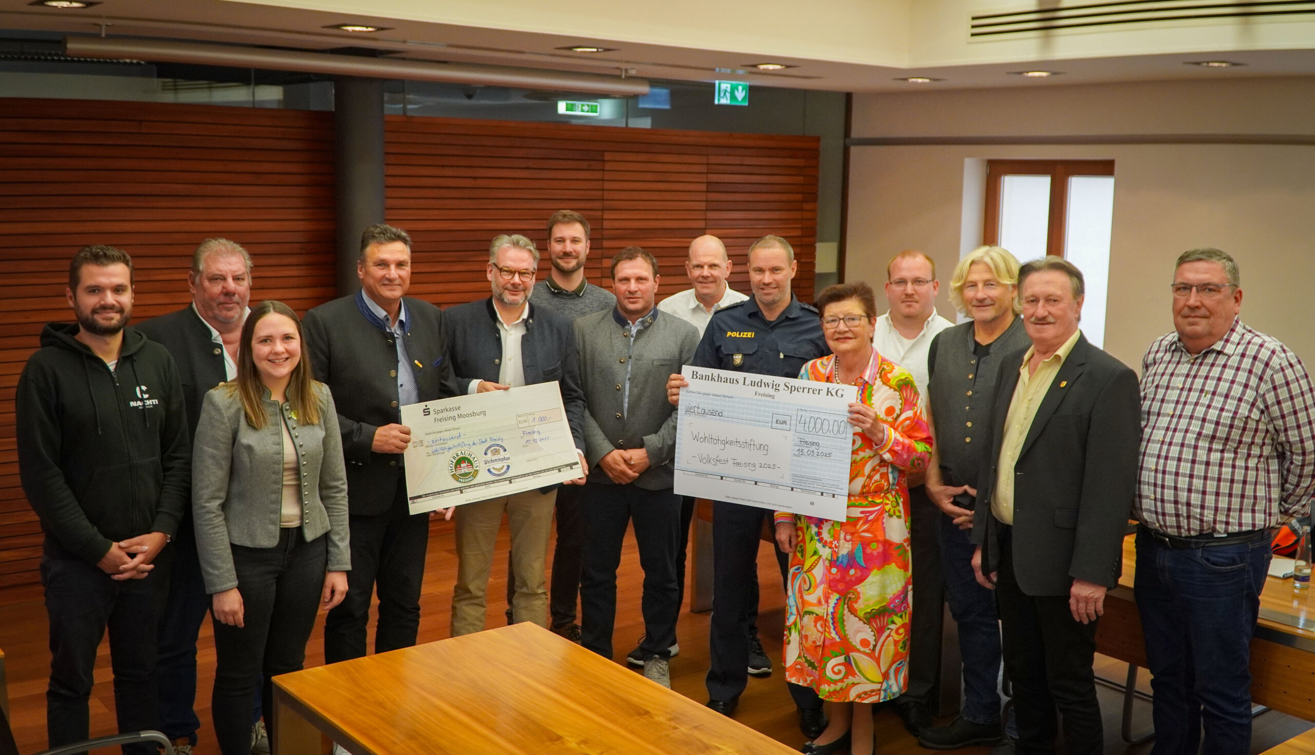 Beim Behördenfußballturnier, das in diesem Jahr die Sparkasse Freising-Moosburg gewann, wurden 1.000 Euro für den guten Zweck erspielt – die Hälfte davon stiftete die Sparkasse. Weitere 4.000 Euro kamen durch das Promi- und Behördenschießen, den Verkauf der beliebten Volksfest-Pins und -Bänder zusammen. Da die Festbierprobe entfiel und damit Spendeneinnahmen ausblieben, rundeten die Brauereien den Betrag großzügig auf. Die Spendenschecks kommen der Wohltätigkeitsstiftung der Stadt Freising zugute.