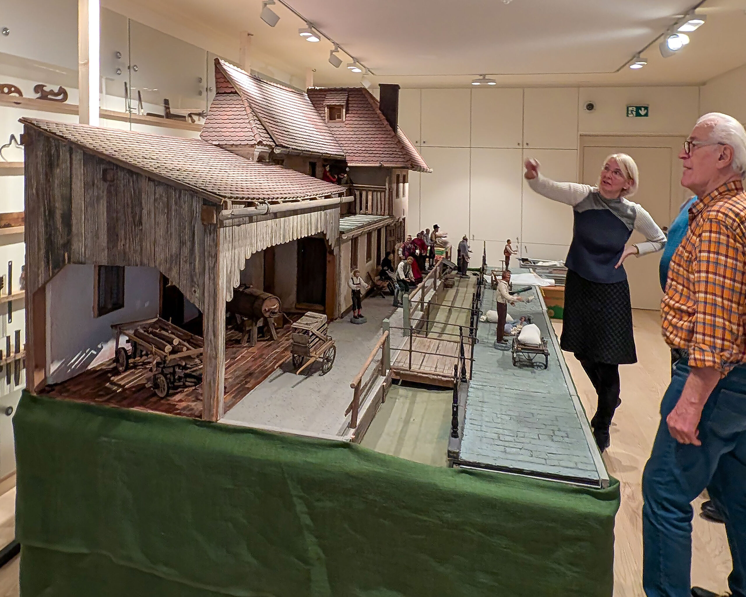 Im Advent heißt das Stadtmuseum Freising die Freisinger Krippenfreunde willkommen: Ihre große, ursprünglich in den 1980er-Jahren für den Dom gefertigte Krippe wurde im Museum neu aufgebaut. Bis 2018 war sie im nördlichen Seitenschiff des Doms zu sehen – eine Präsentation, die seit 2019 aus Gründen der Fluchtwegesicherung nicht mehr möglich ist. Die detailreiche Szenerie zeigt die historische Fischergasse mit der Moosach und dem Anwesen Fischergasse 18, belebt von Figuren in Kleidung des ausgehenden 19. Jahrhunderts. Liebevoll gestaltete Accessoires wie Wägen, Fischreusen oder Brezn im Korb des Bäckers machen die Szene besonders lebendig. Die Krippe ist bis Lichtmess (2. Februar 2026) zu sehen und wird während dieser Zeit immer wieder verändert.