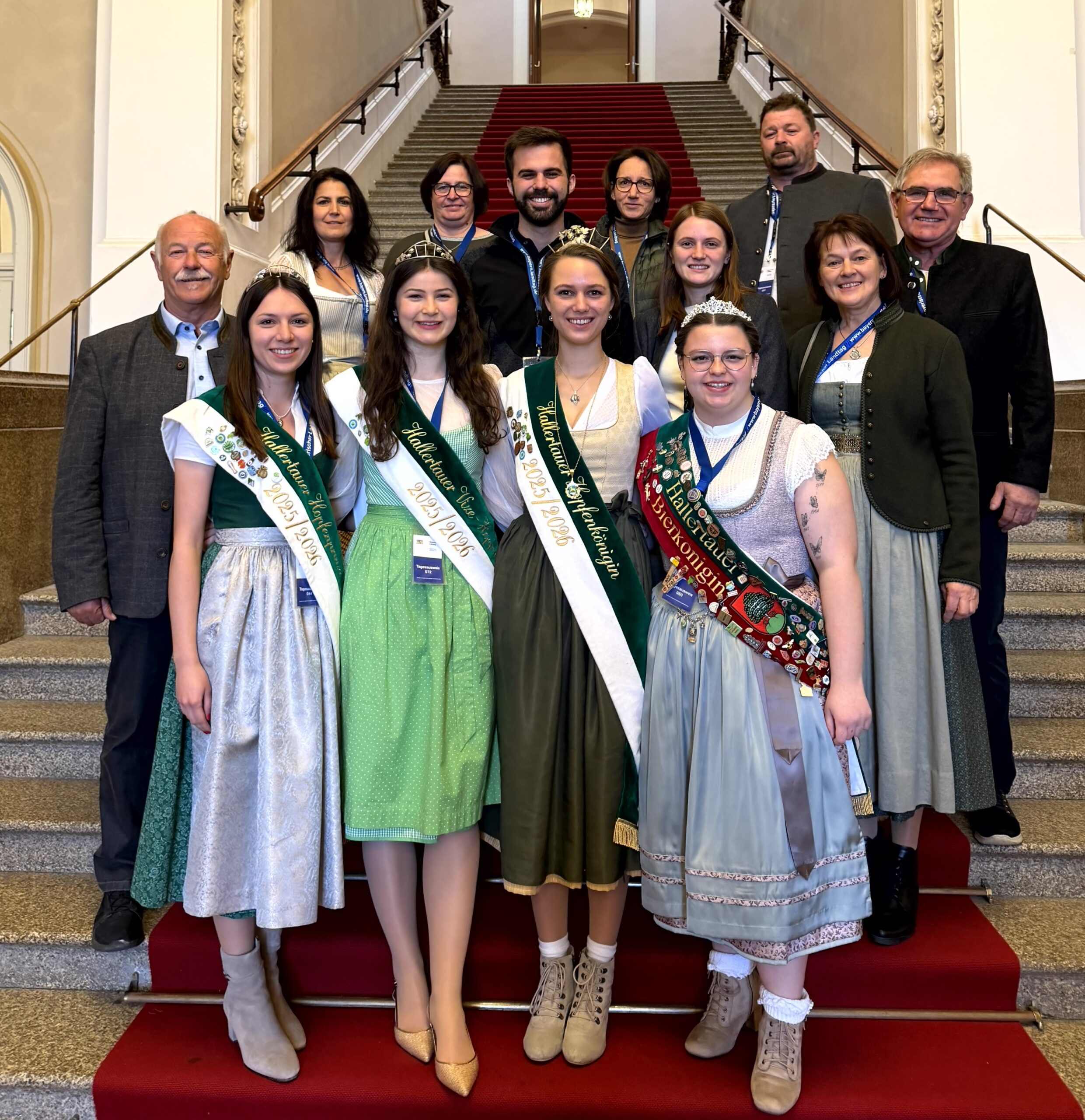 Den Bayerischen Landtag haben kürzlich die Hallertauer Hopfenkönigin Theresa Eisenrieder aus Oberpindhart, Vize-Königin Franziska Mitterhuber (Schweitenkirchen) und Hopfenprinzessin Anna Kappelmeier (Geisenfeld) besucht. Begleitet wurden sie von der Hallertauer Bierkönigin Lisa Massier aus Mainburg. Der Freisinger Abgeordnete Benno Zierer (Freie Wähler) hatte die Hoheiten gemeinsam mit ihren Familien eingeladen und führte sie durch das Maximilianeum. Von der Tribüne des Plenarsaals aus konnten die Regentinnen aus der Hallertau eine Debatte erleben und anschließend eine Filmvorführung für Besuchergruppen verfolgen. „Ich habe mich sehr darüber gefreut, dass die Hoheiten meiner Einladung gefolgt sind“, erklärte der Abgeordnete Benno Zierer. „Ich wünsche ihnen noch viel Freude bei ihrer Aufgabe als Repräsentantinnen unserer Heimat, der Landwirtschaft und der bayerischen Kulturgüter Hopfen und Bier.“