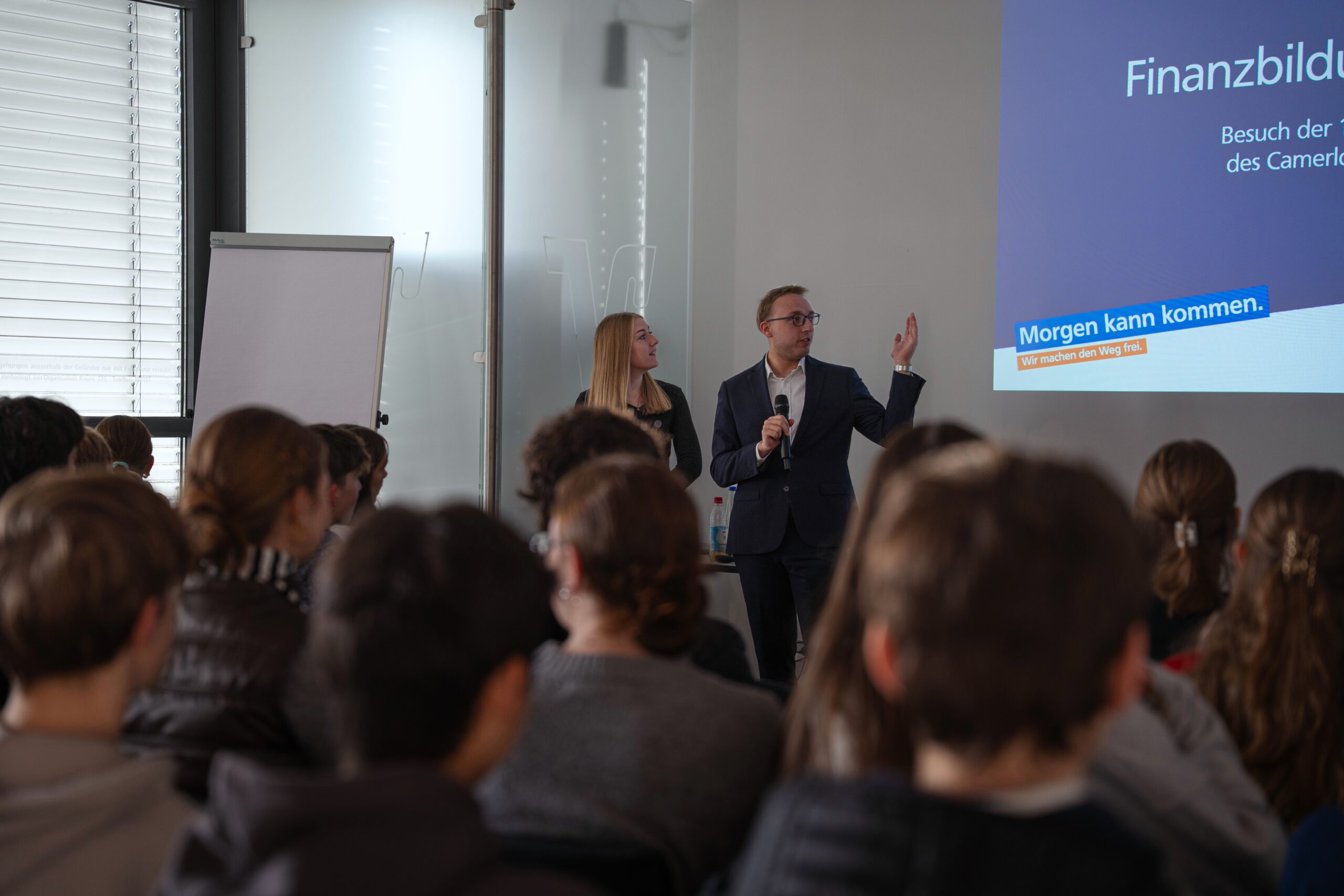 Nach einer kurzen Begrüßung übernahm Bankkaufmann Jannis Dietl das Wort. Er erklärte, wie